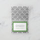 Tarjetas de agradecimiento modernas y de moda. Presenta un diseño/ilustracion de costura verde sobre un patrón de damasco blanco y negro. El interior tiene un espacio en blanco para un mensaje personalizado (o borrar para dejar en blanco) y un patrón de damasco en el interior. Ideal para Bodas o duchas de novias.