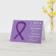 La tarjeta de saludo o nota muestra la imagen de una pintura de cinta de reconocimiento púrpura. La tarjeta dice "¡Espero y apoyo la toma de conciencia por una<Add Your Cause Here>cura!" ¡Añade tus propias palabras o mensajes opcionales a la tarjeta de felicitación para los ángeles de arte personalizados y para los guardianes de la conciencia! También puede eliminar el texto de las tarjetas de notas sólo de arte. Un color púrpura de la cinta de conciencia significa apoyo para el cáncer de páncreas, la enfermedad de Crohn y la colitis, la enfermedad de Alzheimer, el acoso antigay (Día del Espíritu), el sobreviviente del cáncer (todo tipo de), la violencia doméstica, el lupus, el síndrome de Sjögren, el dolor crónico, el Leiomyosarcoma, la malformación de Arnold-Chiari Inmigración, Fibrosis quística, Retinitis Pigmentosa y Fibromialgia. ¡Dejemos que esta cinta de conciencia púrpura apoye estas causas! Las tarjetas de felicitación de arte de la cinta de reconocimiento morado se pueden personalizar con mensajes personalizados para crear una gran conciencia de la causa de las tarjetas de arte para recaudadores de fondos, regalos de concientización u otros eventos especiales. Dé esta tarjeta de arte como regalo de la cinta de sensibilización para cualquier ocasión.