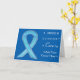 La tarjeta de saludo o nota muestra la imagen de una pintura de cinta azul de reconocimiento. La tarjeta dice "Espero y apoyo una cura para ()" ¡Añade tus propias palabras o mensajes opcionales a la tarjeta de saludo para los ángeles de arte personalizados para crear notecas de conciencia! También puede eliminar el texto de las tarjetas de notas sólo de arte. El color de la cinta azul de concienciación muestra apoyo a la ELA, la libertad de expresión, la concienciación sobre el cuidado de los niños, el cáncer de colon, la concienciación sobre el maltrato infantil, la conciencia sobre el manejo del ebrio, la educación, la artritis, la enfermedad de Huntington, la enfermedad tiroidea y salvar la música, por citar sólo algunos. Las tarjetas de felicitación de arte de la cinta azul de concientización se pueden personalizar con mensajes personalizados para crear una gran conciencia de la causa de las tarjetas de arte para recaudadores de fondos, regalos de concientización u otros eventos especiales. Dé esta tarjeta de arte como regalo de la cinta de sensibilización para cualquier ocasión.