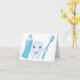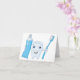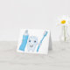 Es importante cepillarse los dientes. Este es el diseño dental perfecto. Es un diente blanco feliz que sostiene algo de pasta dental y un cepillo de dientes. Un recordatorio amable. Este diseño de dientes y cepillos de dientes se ve muy bien en estas tarjetas de notas