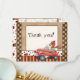 Esta tarjeta de nota de agradecimiento presenta un mono adorable y caprichoso en medias que corre para dar la bienvenida a tu nuevo pequeño al mundo. ¡Está pedaleando un coche retro con gafas y una bufanda ondeando detrás de él! Esta versión tiene el patrón de puntos coincidentes en el reverso. También se ofrece un reverso a cuadros. Disponible también en anuncios de nacimiento, franqueo y tarjetas de agradecimiento para todas tus necesidades de nuevo bebé. También te puede gustar: