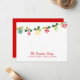 Este hermoso y festivo conjunto de papelería familiar muestra un banderín de adornos navideños a rayas y está personalizado con el nombre de la familia en letra cursiva en la parte superior de las tarjetas y los nombres de los miembros de la familia individual (o la dirección) en la parte inferior en sans serif clásico.