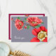 Nuestras tarjetas de notas planas fijas personalizadas bonito tienen elegantes flores de musgo rosa sobre el fondo gris de la tarjeta. En la parte trasera hay un borde de vinos con una pequeña flor de musgo rosa a juego adornada con una carta.
