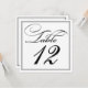 Ideales para recepciones de fiestas y bodas, estas Tarjetas de número de mesa con letra de caligrafía elegante en blanco y negro son simples y sofisticadas, y se coordinarán con muchos estilos diferentes de flores y decoración.