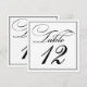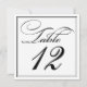 Ideales para recepciones de fiestas y bodas, estas Tarjetas de número de mesa con letra caligráfica elegante en negro y blanco son simples y sofisticadas, y se coordinarán con muchos estilos diferentes de flores y decoración.