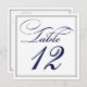 Tarjetas de número de mesa con letra script azul m