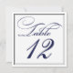 Ideales para recepciones de fiestas y bodas, estas Tarjetas de número de mesa con letra script de caligrafía azul marino, negro y blanco son simples y sofisticadas, y se coordinarán con muchos estilos diferentes de flores y decoración.