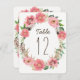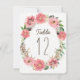 Tarjetas de número de mesa con plumas boho acuarela con flores rosas y cuernos. Colección creada por Colourful Designs Inc. Copyright 2015-2017