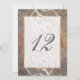 El patrón de damasco elegante superpone fragmentos de pintura etrusca en rojos, naranjas y sepia de una antigua Pompeya. Texturas y tonos vintage hermosos. Tarjetas de número de mesa elegantes para boda o evento especial con frente y dorso personalizables.