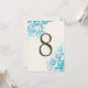 Elegantes números de mesa personalizables de boda Ombre Turquesa con una hermosa impresión floral. Colección creada por Colourful Designs Inc. Copyright 2014.
