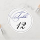 Ideales para recepciones de fiestas y bodas, estas Tarjetas de número de mesa redondas con escritura en blanco, negro y azul real elegante son simples y sofisticadas, y se coordinarán con muchos estilos diferentes de flores y decoración.