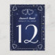Blue White Gold Hearts & Stars Table Number Cards Arte y diseño de Julie Alvarez