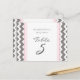 Elegante y moderno color rosa rosa pastel claro, carbón de carbón oscuro gris y tarjetas de número de mesa boda blanco con divertido patrón de rayas de zigzags chevron retro. Personalizar estas tarjetas para crear tarjetas de número de tabla personalizado para cada tabla en su boda. Añade tus nombres y fecha de boda. Patrón disponible en una amplia gama de productos bodas coincidentes.