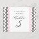 Tarjetas de número de tabla boda Chevron rosa gris