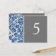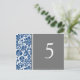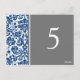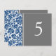 Elegantes y clásicas tarjetas de boda azul marino oscuro, gris y blanco con un patrón de damasco floral clásico y de moda vintage. Personalizar estas tarjetas para crear tarjetas de número de tabla personalizado para cada tabla en su boda. Patrón disponible en una amplia gama de productos bodas coincidentes.