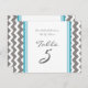 Elegante y moderno verde azulado azul, negro carbón de carbón gris y blanco boda tarjetas número de mesa con divertido patrón de rayas de zigzags de chevron retro. Personalizar estas tarjetas para crear tarjetas de número de tabla personalizado para cada tabla en su boda. Añade tus nombres y fecha de boda. Patrón disponible en una amplia gama de productos bodas coincidentes.