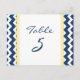 Elegante y moderno limón amarillo claro, azul marino oscuro y boda blanco con un patrón retro y divertido de zigzags chevron. Personalizar estas tarjetas para crear tarjetas de número de tabla personalizado para cada tabla en su boda. Patrón disponible en una amplia gama de productos bodas coincidentes.