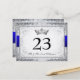 Tarjetas de número de tabla de Boda de cuento de hadas. Con colores reales de realeza azul y plata y perlescentes. Esta elegante y sofisticada tarjeta postal de boda de cuento de hadas es ideal para cualquier boda de tema o boda de corbata negra. Con un toque de elegancia y encanto, enviarás saludos a tus huéspedes con un estilo completo con esta postal de boda de cuento de hadas gracias a todos tus huéspedes. Tiene perlas falsas y diamantes en las flores que hay en las esquinas. Una corona real se sienta en la parte inferior derecha adornada con plata y joyas. Un ilustracion de fibra se sienta sobre un fondo vintage y un borde ornamentado sostiene el papel ornamentado texturado en el medio. Los productos que coincidan pueden encontrarse en la sección boda de mi tienda.