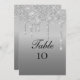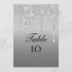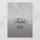 Boda Número de tabla de tarjetas con purpurina de goteo de color plata.