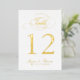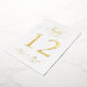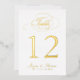 Estas tarjetas de número de tabla presentan una tipografía de escritura caligráfica manuscrita de moda en un acabado prensado de Relieve metalizado real con espacio en la parte posterior para cargar una foto de su elección. Cambie fácilmente la foto, los nombres y el número de la mesa para personalizar cada tarjeta de cada mesa en su boda o fiesta de la cena y miren a sus invitados con un toque de elegancia.