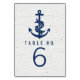 Un ancla azul marino sobre un fondo blanco-negro de madera. El cartel del ancla dice "AMOR", pero el texto se puede personalizar. Perfecto para un boda náutico, sobre todo si vas con el estilo vintage/rústico.
