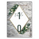 Cartas numéricas de Boda de madera rústica de Birch Tree Bark - presenta un fondo rústico de corteza de árbol de abedul con elementos florales de helecho, flores solteras de lirio calla, aliento de bebé, hojas y más. El cuadro de texto es un elegante triángulo con un falso marco impreso en oro de Relieve metalizado.