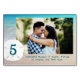 Tarjetas de número de tabla de bodas de destino tropical con plantilla de foto. Crea cada tarjeta por separado con imágenes y texto, que contarán la historia de tu cortejo. El número de la tabla se imprime sobre un dólar de arena blanca. La imagen de fondo es de la playa y del océano. Un dólar de arena más grande en la parte trasera también tiene el número. Las fotos horizontales de cualquier tamaño funcionarán en la plantilla de fotos. Esta tarjeta es muy fácil de personalizar, pero no dejes que el texto se acerque demasiado a los bordes o se corte en producción. Tres líneas son lo máximo que sugiero.