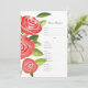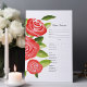 Hermosa y elegante tarjeta de menú de flores de rosa roja es ideal para un diseño coherente de boda boho y rústica.