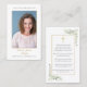 Tarjetas de oración memorial de pésame funeral con foto que presentan elegantes hojas de vegetación de acuarela que enmarcan la oración. Puede personalizar con la oración que elija si lo prefiere. Diseñado por Thisisnotme©