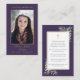 Tarjetas de oración memorial fúnebre de simpatía con fotos que presentan follaje botánico de acuarela sobre un fondo púrpura que enmarca la oración. Puede personalizar con la oración que elija si lo prefiere. Diseñado por Thisisnotme©