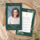 Tarjetas de oración memorial de pésame fúnebre con foto que presentan follaje botánico de acuarela en un fondo verde esmeralda que enmarca la oración. Puede personalizar con la oración que elija si lo prefiere. Diseñado por Thisisnotme©