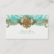 Tarjetas de presentación personalizadas de oro y azul turquesa con conchas marinas Glam Beach elegantes