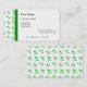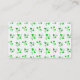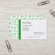 Tarjetas de visita personalizado con un patrón de shamrock irlandés verde sobre blanco. El borde tiene un borde de cinta verde. Haga clic en Personalizar para cambiar los colores de fondo, las fuentes, agregar texto personalizado y más, incluso para guardar el diseño más adelante.