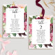 Ayude a sus invitados a encontrar su mesa con estas elegantes tarjetas de plan de asientos modernas con los nombres de los invitados. Tarjetas a doble cara para que los invitados puedan buscar desde ambos lados, delantero o trasero, sus nombres. Agregue clips o haga un agujero para colgar exhibiciones, agréguelos en una exhibición de pared/marco o use un soporte/marco de mesa. Diseño único con un hermoso ramo floral de acuarela y delicada mancha de acuarela que se desliza en una belleza de tonos burgundy, rosa, rubor, bayas y malva. Detalles de caligrafía moderna a mano. Parte de nuestra colección "Romance Floral" con una variedad de productos coordinados disponibles, incluyendo tarjetas de número de mesa y menú. Visite la colección completa haciendo clic en el enlace debajo de "Otros productos de esta colección".