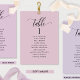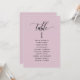 Ayude a sus huéspedes a encontrar su mesa con estas elegantes tarjetas de asiento de malva suave y moderna con los nombres de los huéspedes. Espacio despejado alrededor que le da la libertad de usar clips o agujeros de perforación para las pantallas colgantes, o usar un soporte de mesa/marco. Tarjetas de doble cara para que los huéspedes puedan ver sus nombres desde ambos lados, delante y detrás. Fondo morado polvoriento malva y texto negro. Detalles modernos de caligrafía escrita a mano. Varias opciones de color. Tener todos los números de tabla en el mismo color o mezclar colores según el tema de color del evento. Parte de nuestra colección "Joyful Floral" con muchos productos de coordinación disponibles. Visita la colección por categoría en esta página del producto o visita toda la colección de una sola mirada en: https://www.zazzle.com/collections/joyful_pastel_floral_collection-119953493901910528