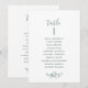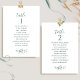 Ayude a sus invitados a encontrar su mesa con estas elegantes tarjetas de plan de asientos con los nombres de los invitados. Tarjetas a doble cara para que los invitados puedan buscar desde ambos lados, delantero y trasero, sus nombres. Espacio claro alrededor que le da la libertad de usar clips o perforar agujeros para exhibiciones colgantes, o usar un soporte/marco de mesa. Diseño con texto azul, delicado detalle floral dibujado a mano en tonos verdes y detalles de caligrafía manuscrita. Varias opciones de color. Tener todos los números de mesa en el mismo color o mezclar colores según el tema de color de su evento. Parte de una colección con una variedad de productos coordinados disponibles, incluyendo tarjetas de número de mesa y menús.