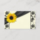 Tarjetas de acompañamiento o tarjetas de acompañamiento negras y crema para la boda. Para realizar cambios en las tarjetas, incluidos cambios en el tipo de letra, color de fuente o color de fondo, utilice la opción personalizar. El tamaño de la tarjeta es de 3,5" x 2,0" y todo lo que se requiere son algunos portatarjetas de lugar si se desea usarlas. Esta tarjeta de lugar de girasol funcionará bien para un boda, cumpleaños, ducha de bodas, aniversario o posiblemente celebración de graduación de secundaria también. Cabe destacar que se ordenan en lotes de un mínimo de 100.