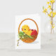 Un diseño muy lindo para Pascua es este de un hermoso pollito amarillo sentado en una cesta de huevos. Este diseño te hará sonreír, está lleno de ternura pascual. Este diseño de pollito y huevos en cesta se ve genial en estas tarjetas