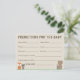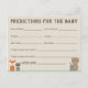 Utilice nuestras tarjetas de predicciones con tema de bosque para que los invitados hagan sus predicciones para el bebé. Hay espacios para adivinar el día de nacimiento, hora de nacimiento, peso, longitud, color de pelo, color de ojos y lo que espera que el bebé obtenga de mamá y papá. Los animales del bosque incluyen un zorro, oso, mapache y conejo.