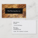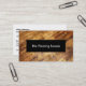 Planta de tarjeta de visita para una tienda o sala de exposición con fondo de parqué en la parte delantera e información de negocios en la otra cara de la tarjeta.