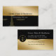 Tarjetas de visita del abogado de clase con un diseño simple y moderno que incluye una escala de ley en segundo plano y un estilo metalizado de oro simulado con un gran diseño de texto que se puede personalizar fácilmente en línea. Diseñado para una oficina de leyes, práctica legal o abogados.