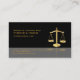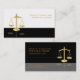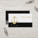 Tarjetas de presentación de abogados en blanco y negro de PixDezines con escalas doradas falsas. Perfecto para profesionales del derecho.