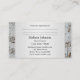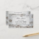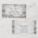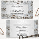 Tarjeta de visita con un tema musical que presenta un diseño elegante de damasco gris con notas metálicas estilizadas. En la parte trasera hay espacio para citas (opcional).