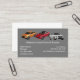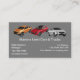 Plantilla de diseño de tarjetas de presentación de concesionario de automóviles usados creada con dos coches y una camioneta en el fondo.