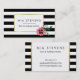 Estas tarjetas de visita femeninas pero profesionales cuentan con rayas blancas y negras de moda con una flor de color bonito marrón y falsos acentos dorados. Personalizar con un monograma, nombre o texto de su elección!