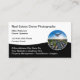 Diseño de tarjetas de visita de servicios de drones Guay creado con un gráfico con un drone sobrevolando un barrio residencial y un diseño clásico editable que se puede personalizar en línea. Diseñado para un operador profesional de drones que trabaja en los campos de la propiedad inmobiliaria, la vigilancia o la fotografía aérea.