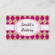 El argyle de frambuesa y crema da a esta tarjeta de presentación un estilo retro. Personalice la tarjeta según sus necesidades, agregue o elimine información, etc... Utilice estas tarjetas de presentación para un negocio, tienda de dulces, tienda, panadería, estilista, tienda de chocolates, boutique, guardería, preescolar, maestro, estilista, maestro, cuidado infantil, cosmetólogo, artista de maquillaje, diseñador, salón, salón de belleza, spa, boutique, etc...