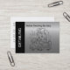 Detalle automático de tarjetas de visita con un diseño moderno que incluye una imagen retro gráfica de un detalle automático en segundo plano, simulación de fondo metalizado plateado brillante impreso digitalmente en el frente para que se vea como metalizado real, y diseño de texto que puede personalizar para satisfacer sus necesidades en ambos lados en este diseño de dos caras. Diseñado como una plantilla de tarjeta de visita para un servicio de detalle automático, lavado manual de coches o detalle profesional.