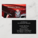 Tarjetas de presentación con tema de automóvil retro de restauración automotriz diseñadas con un automóvil clásico en el fondo y sus detalles organizados y editables en la parte posterior.