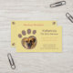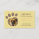 Una tarjeta de presentación con fuentes informales y huella de pata con personalización de foto para incluir fotos de mascotas felices. Esta tarjeta de presentación en marrón y amarillo es ideal para cuidadores de mascotas que desean comunicar un espíritu amigable y animado a los dueños de mascotas. Agregue los detalles de su negocio, incluidos los servicios de cuidado de mascotas en el reverso de la tarjeta.